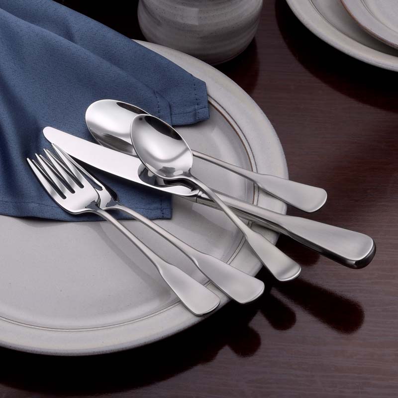 Candra features a classic colonial silhouette with a brushed finished handle and a mirror finished bowl. Each piece is crafted with traditional American sizing and weight. This tasteful pattern is perfect for any occasion.