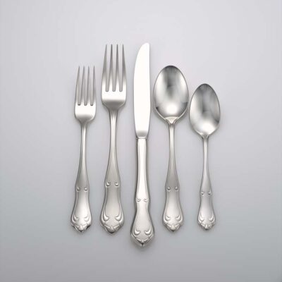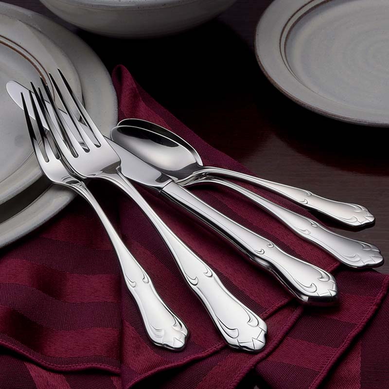The Champlin pattern, with its scrolled design, has modern day grace and style. Skillfully crafted with exceptional care, this classic ‘fiddle-back’ shape is tastefully weighted and looks beautiful with any decor.