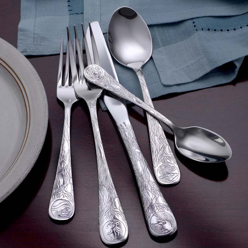 - 65PC SET INCLUDES: 12 Dinner Forks, 12 Dinner Knives, 12 Place Spoons, 12 Teaspoons, 12 Salad Forks, 1 Serving Spoon, 1 Slotted Spoon, 1 Butter Knife, 1 Sugar Spoon, 1 Cold Meat Fork