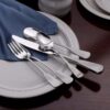 - 65PC SET INCLUDES: 12 Dinner Forks, 12 Dinner Knives, 12 Place Spoons, 12 Teaspoons, 12 Salad Forks, 1 Serving Spoon, 1 Slotted Spoon, 1 Butter Knife, 1 Sugar Spoon, 1 Cold Meat Fork