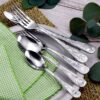 - 20PC SET INCLUDES: 4 Dinner Forks, 4 Dinner Knives, 4 Place Spoons, 4 Teaspoons, 4 Salad Forks