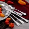 - 65PC SET INCLUDES: 12 Dinner Forks, 12 Dinner Knives, 12 Place Spoons, 12 Teaspoons, 12 Salad Forks, 1 Serving Spoon, 1 Slotted Spoon, 1 Butter Knife, 1 Sugar Spoon, 1 Cold Meat Fork